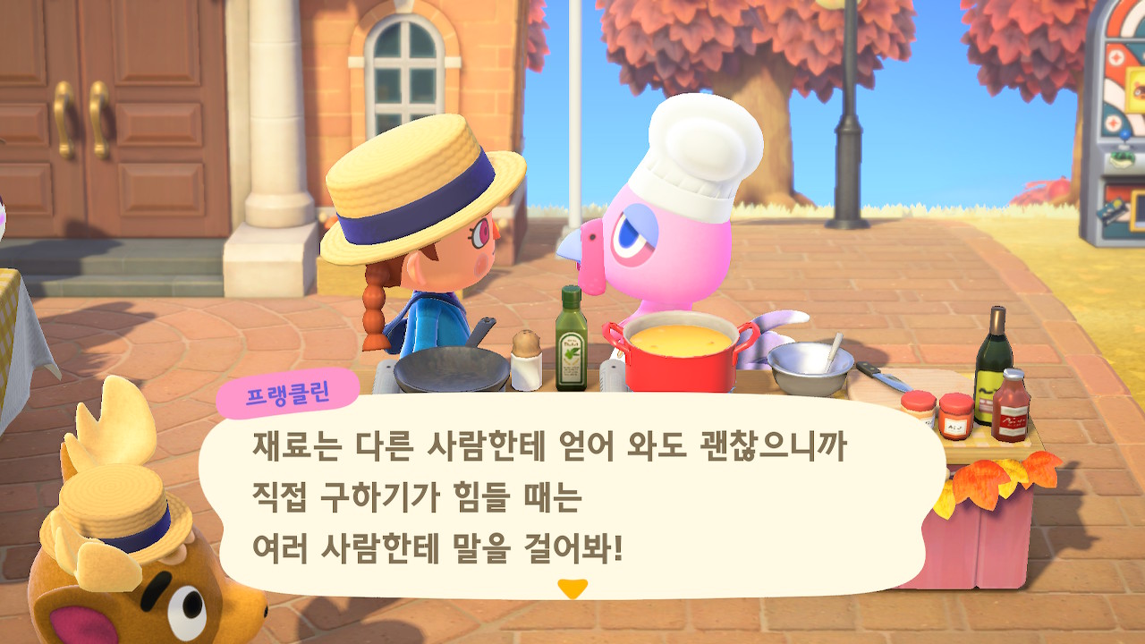 주민들과 재료 맞교환해서 더 맛있는 요리에 필요한 재료를 얻을 수 있다능