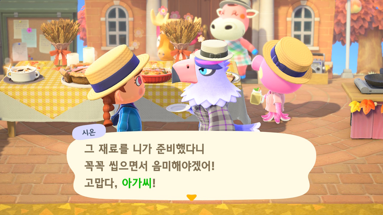 추수감사절인데 칠면조 요리는 왜 없냐고 물어보면 너무 싸패겠죠? (아니 애초에 칠면조 주민을 만든 닌텐도부터..)