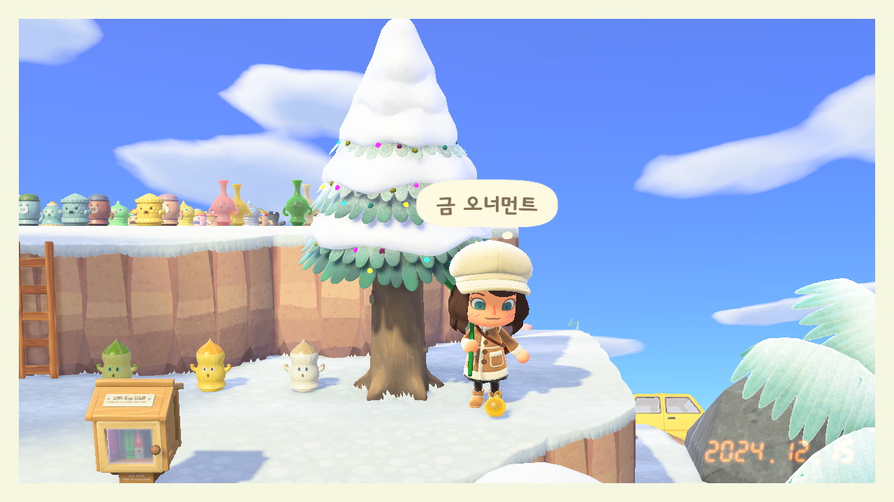 | 모동숲 173일: 눈사람에게 말 걸기, 오너먼트 리스 레시피 겟,집 외관 변경 (0) | 2025.09.13 |