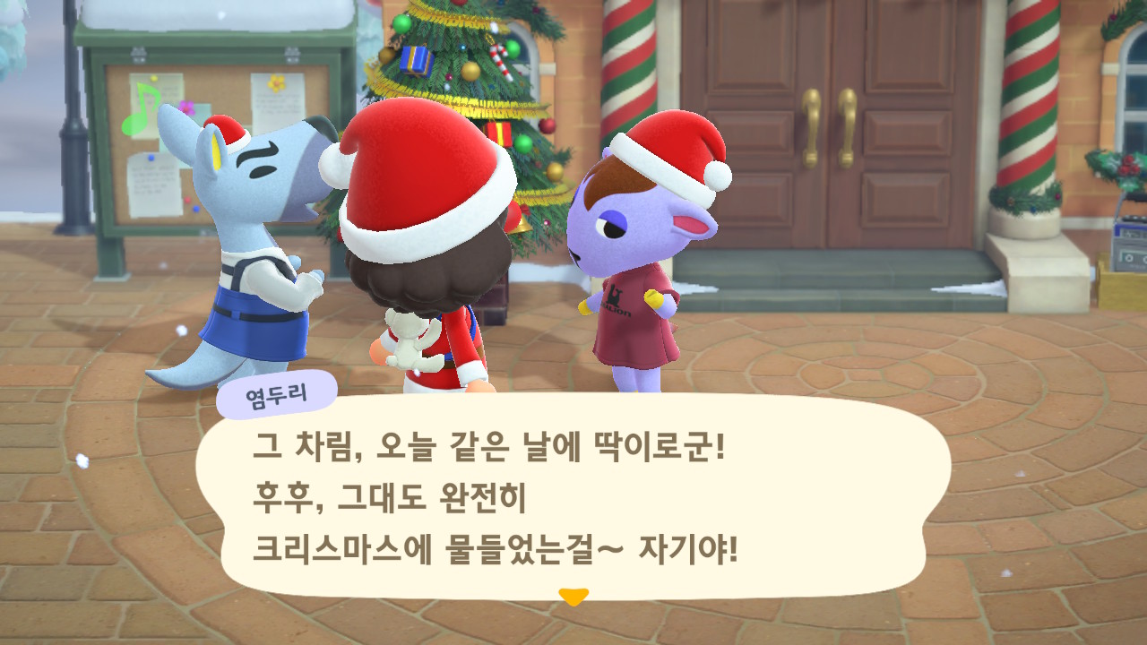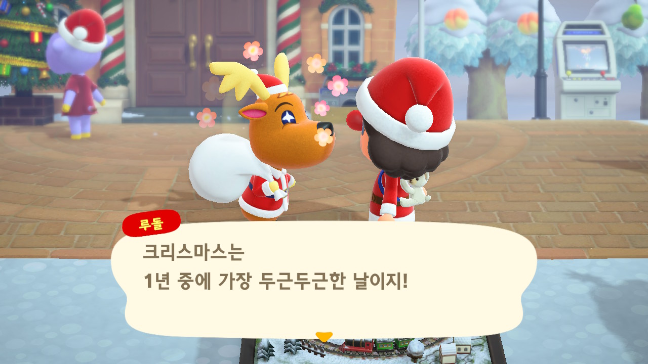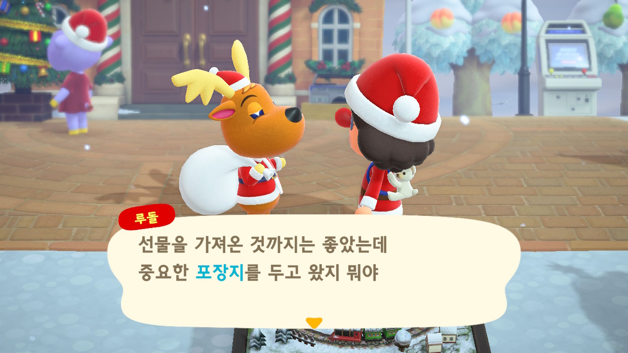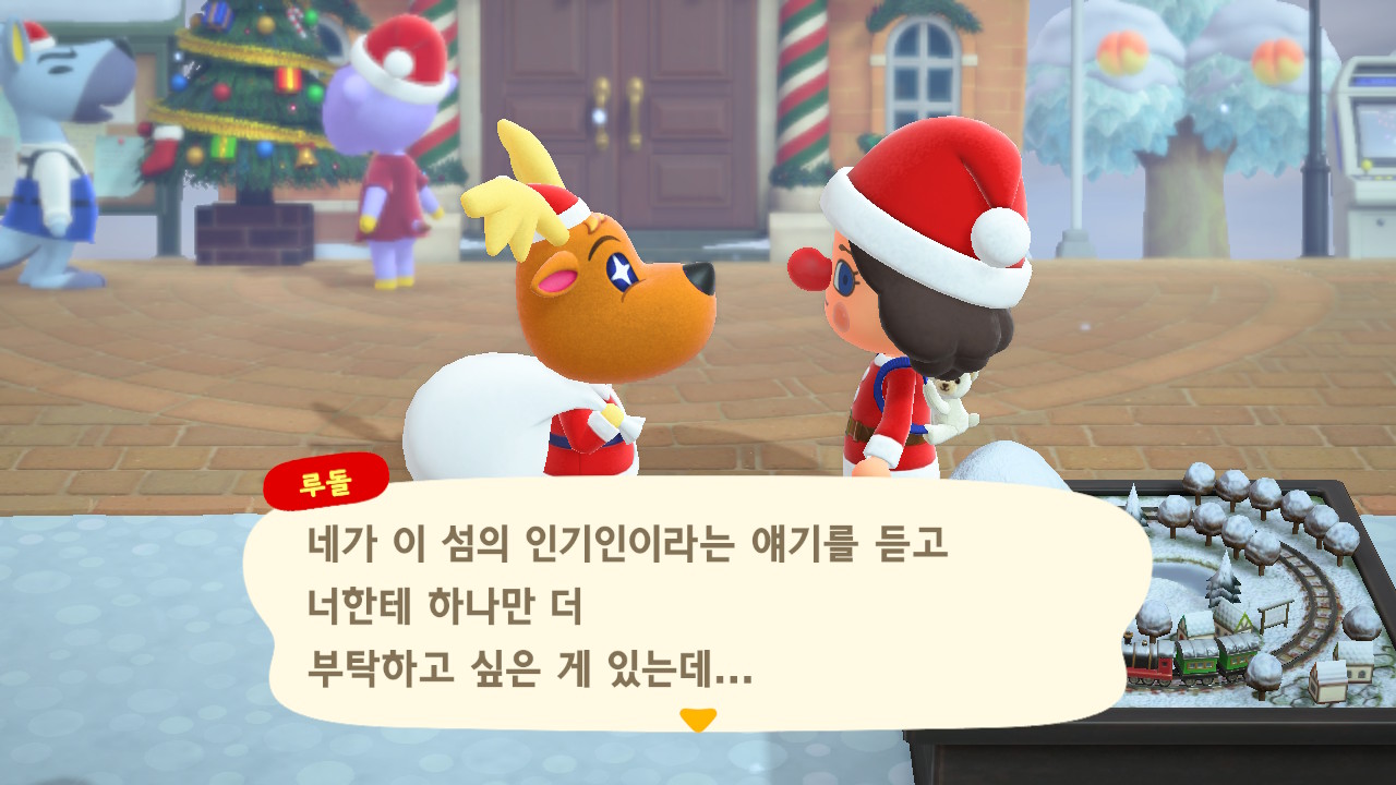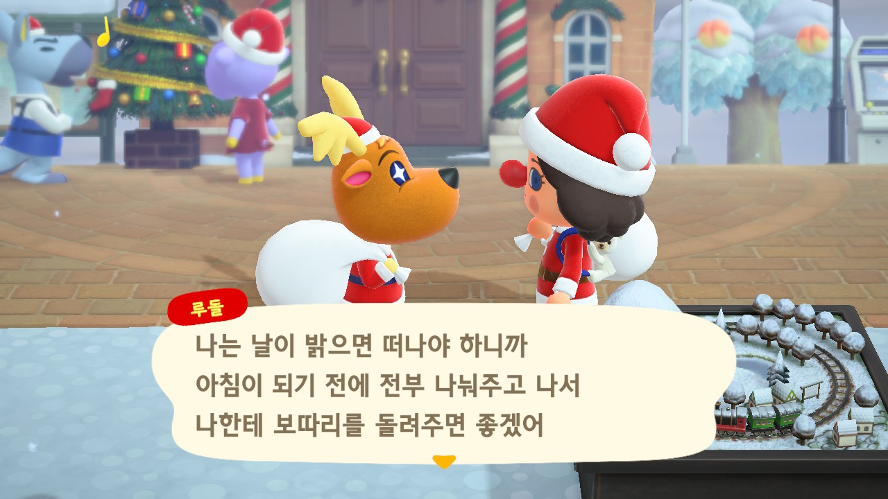 광장에 루돌도 와 있고 다른 주민들도 크리스마스 복장ㅋㅋ