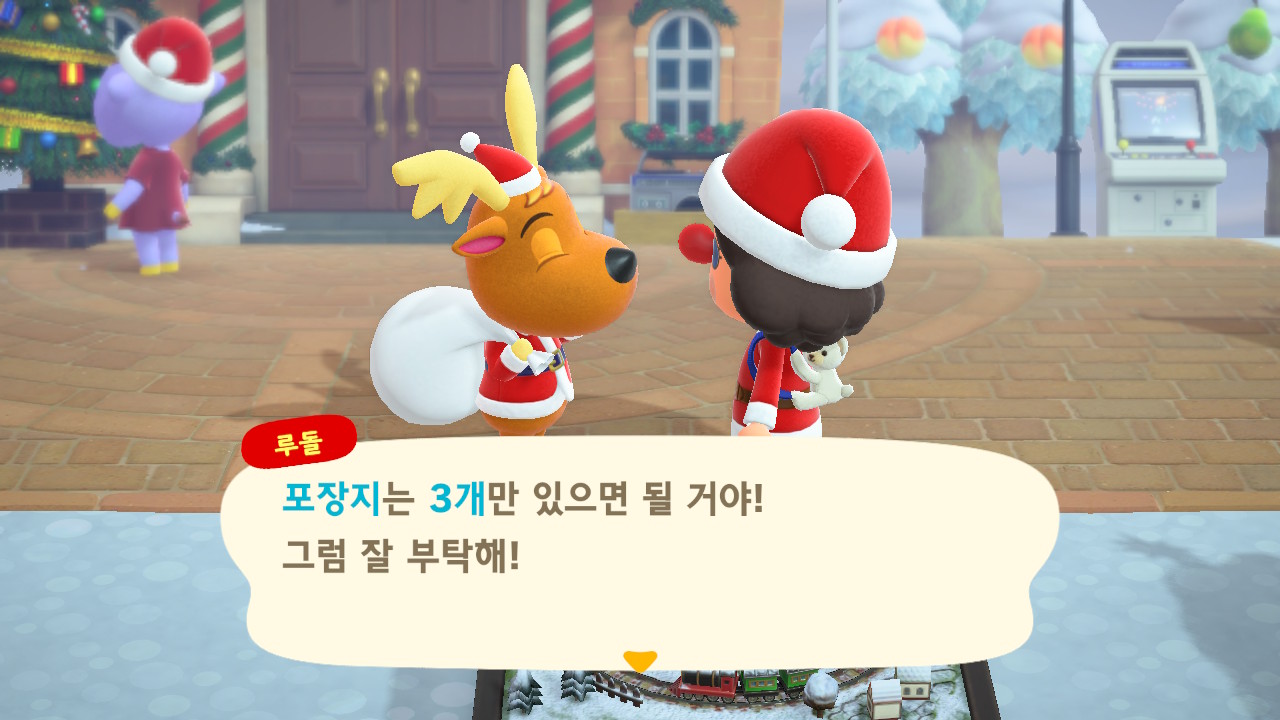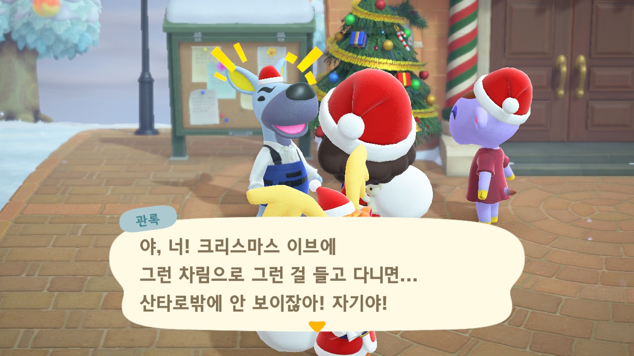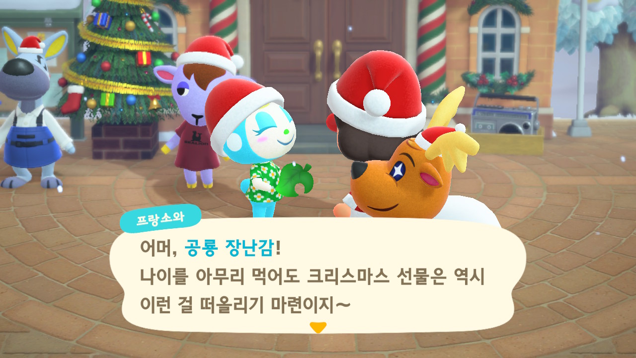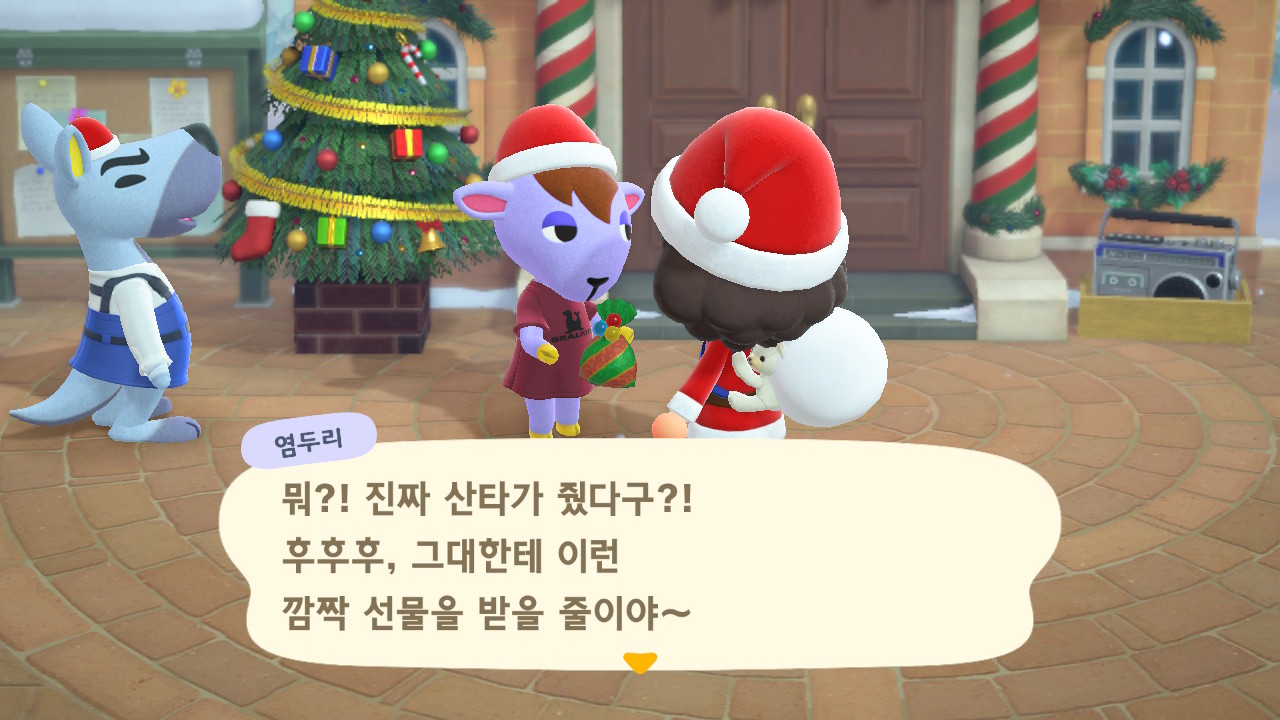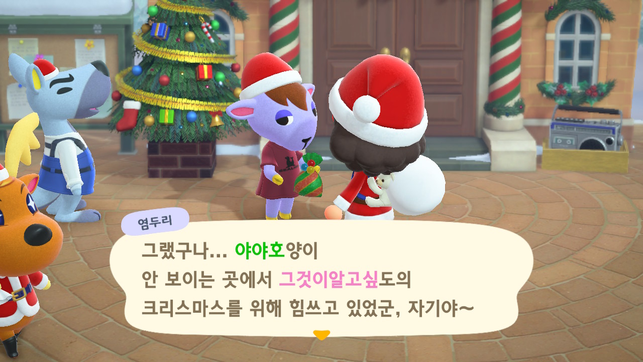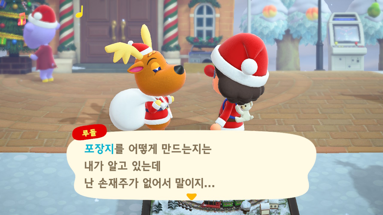 광장에 루돌도 와 있고 다른 주민들도 크리스마스 복장ㅋㅋ