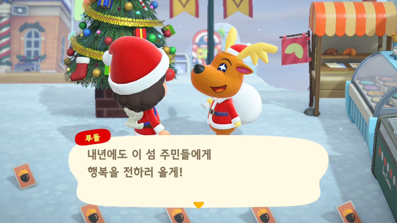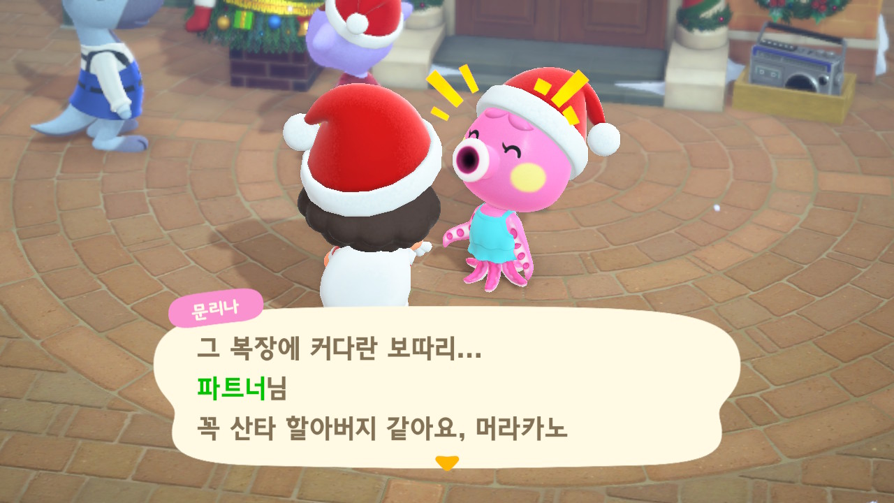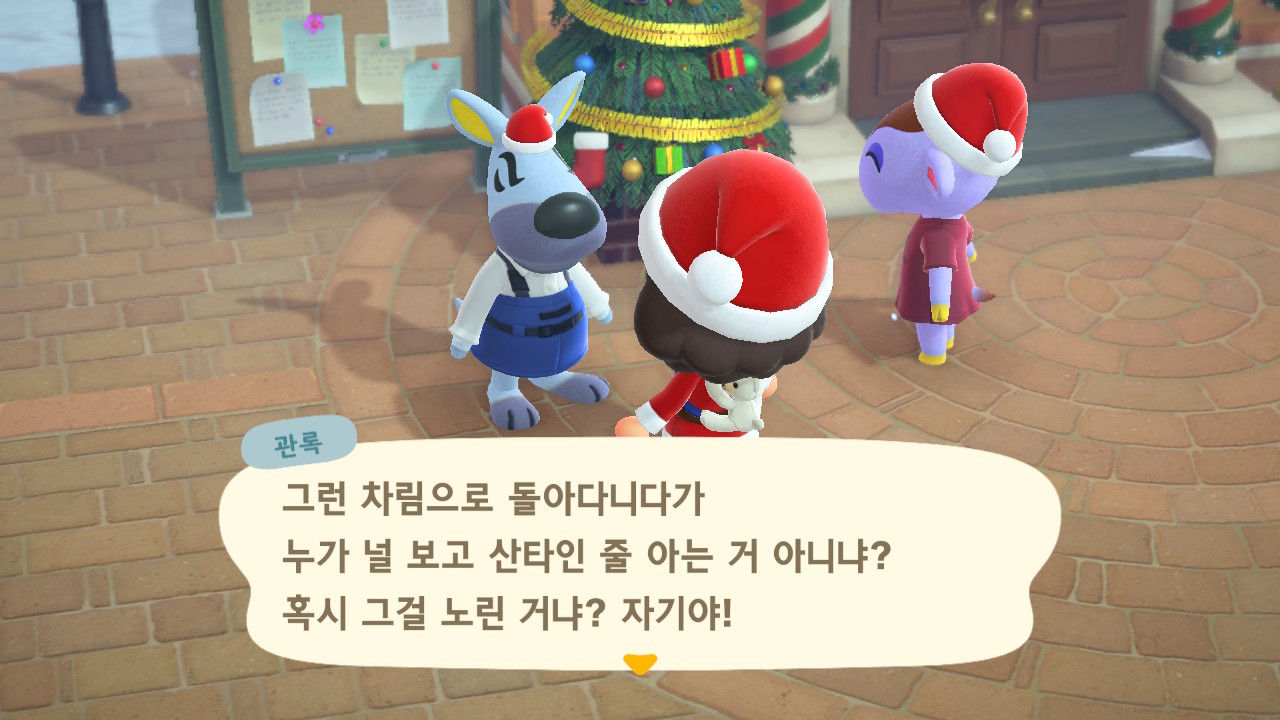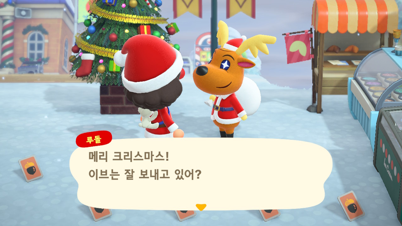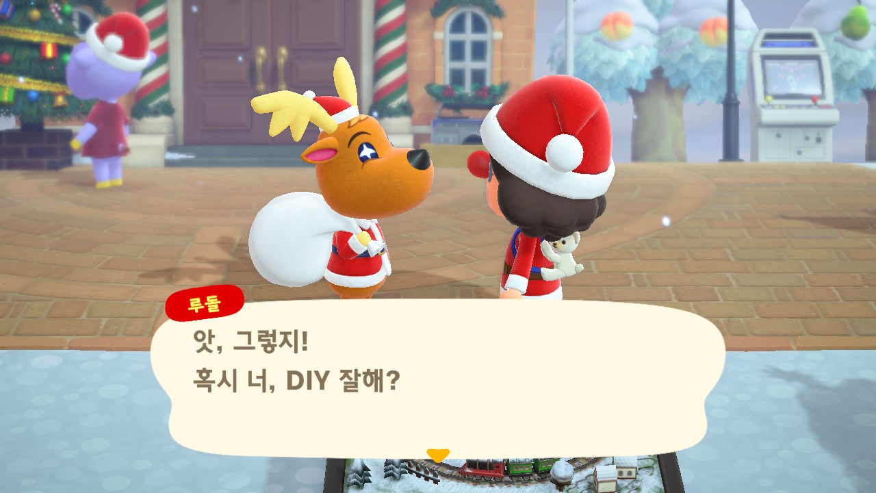 광장에 루돌도 와 있고 다른 주민들도 크리스마스 복장ㅋㅋ