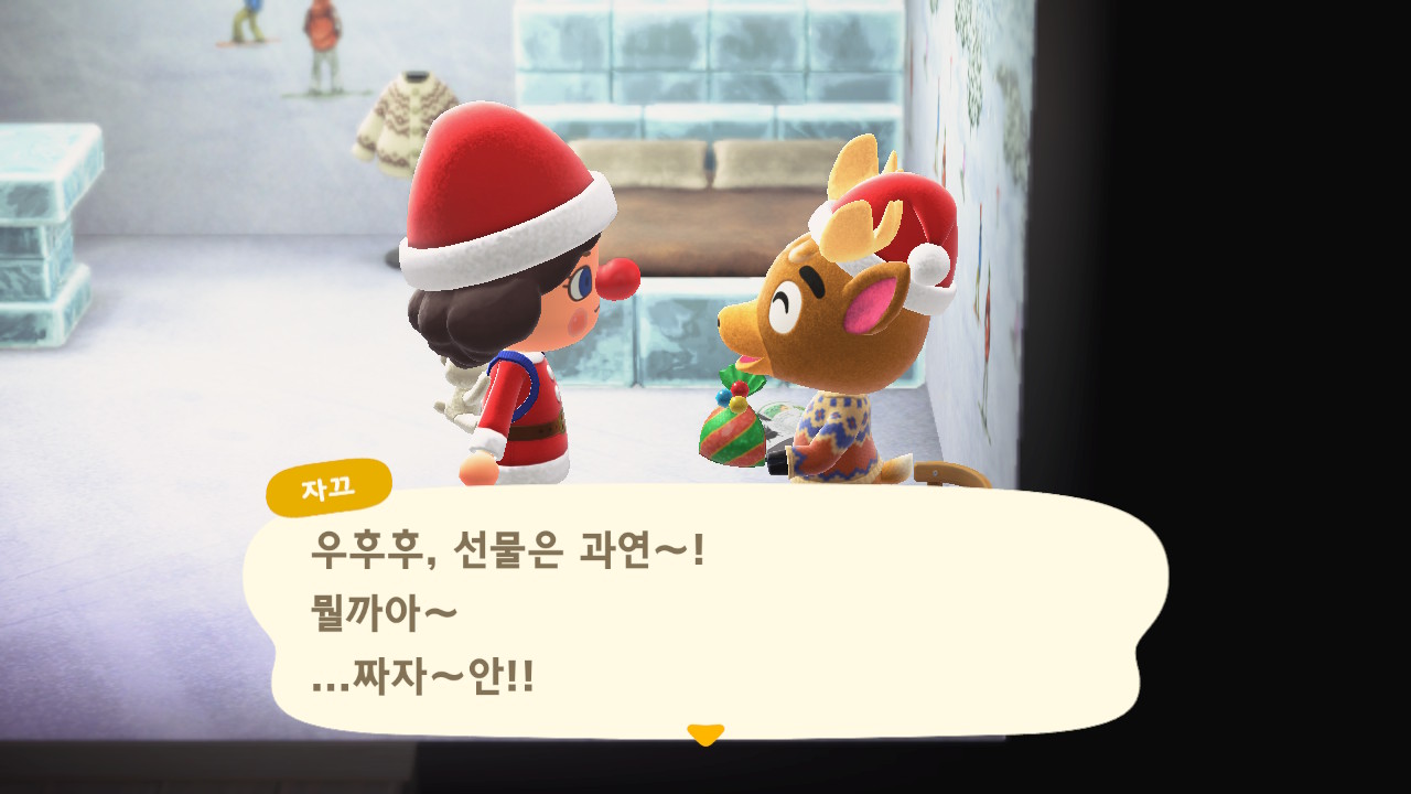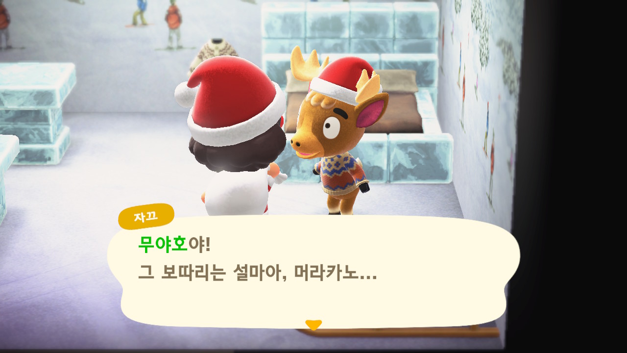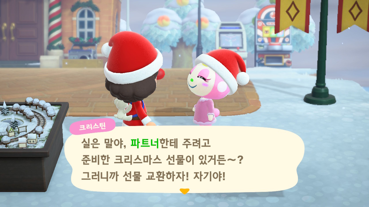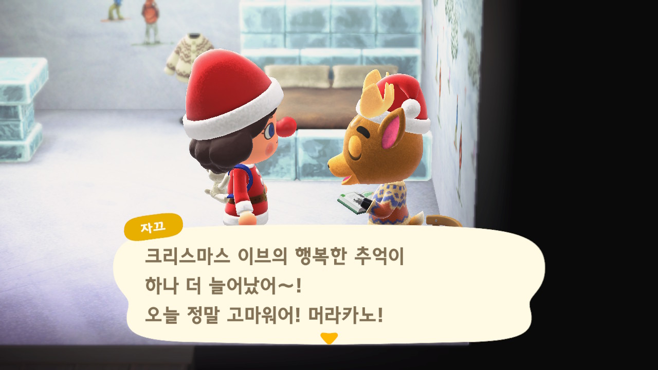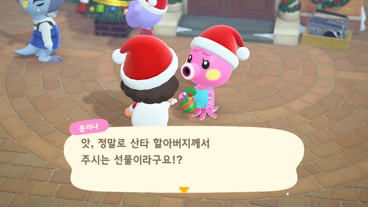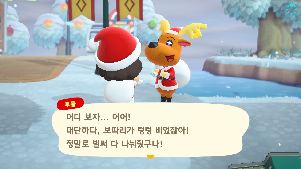광장에 루돌도 와 있고 다른 주민들도 크리스마스 복장ㅋㅋ