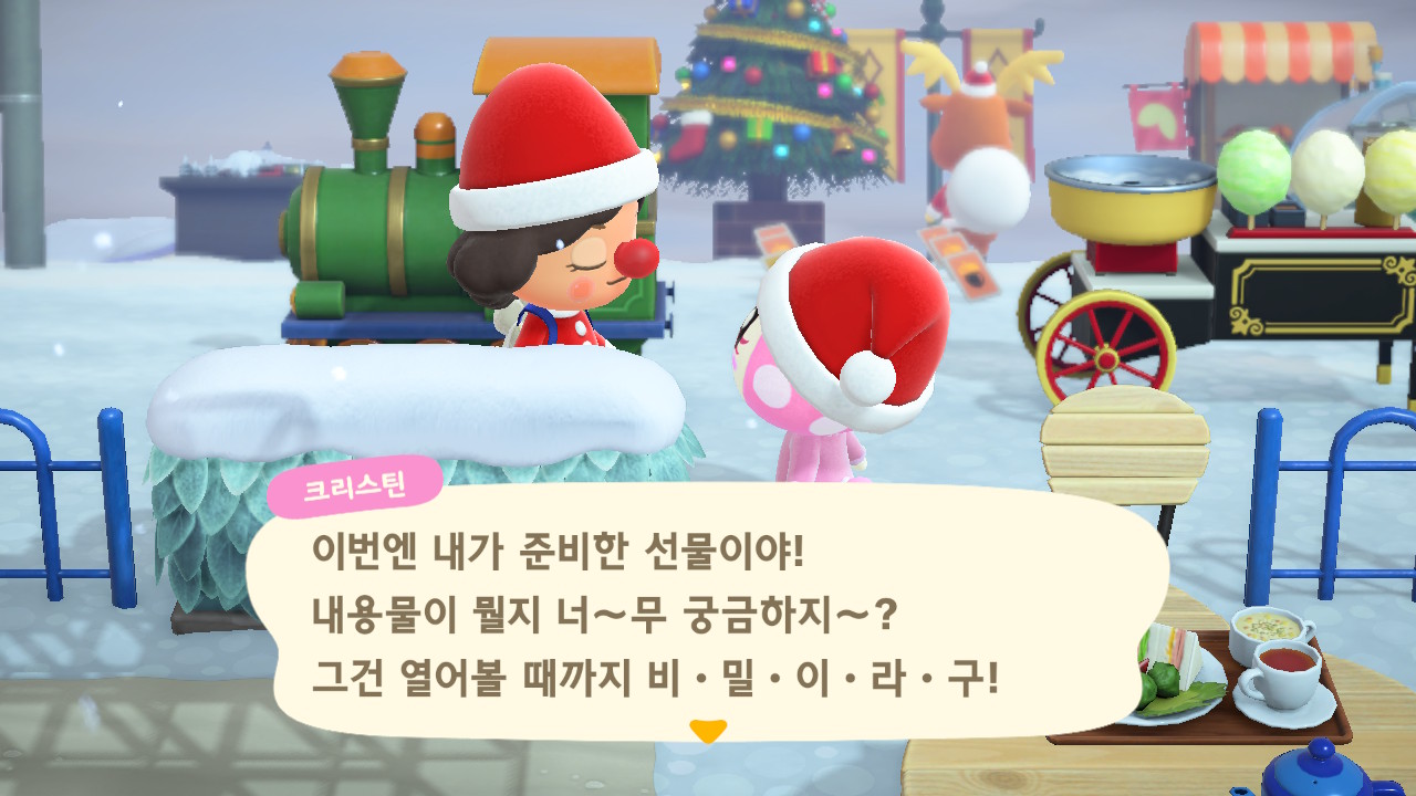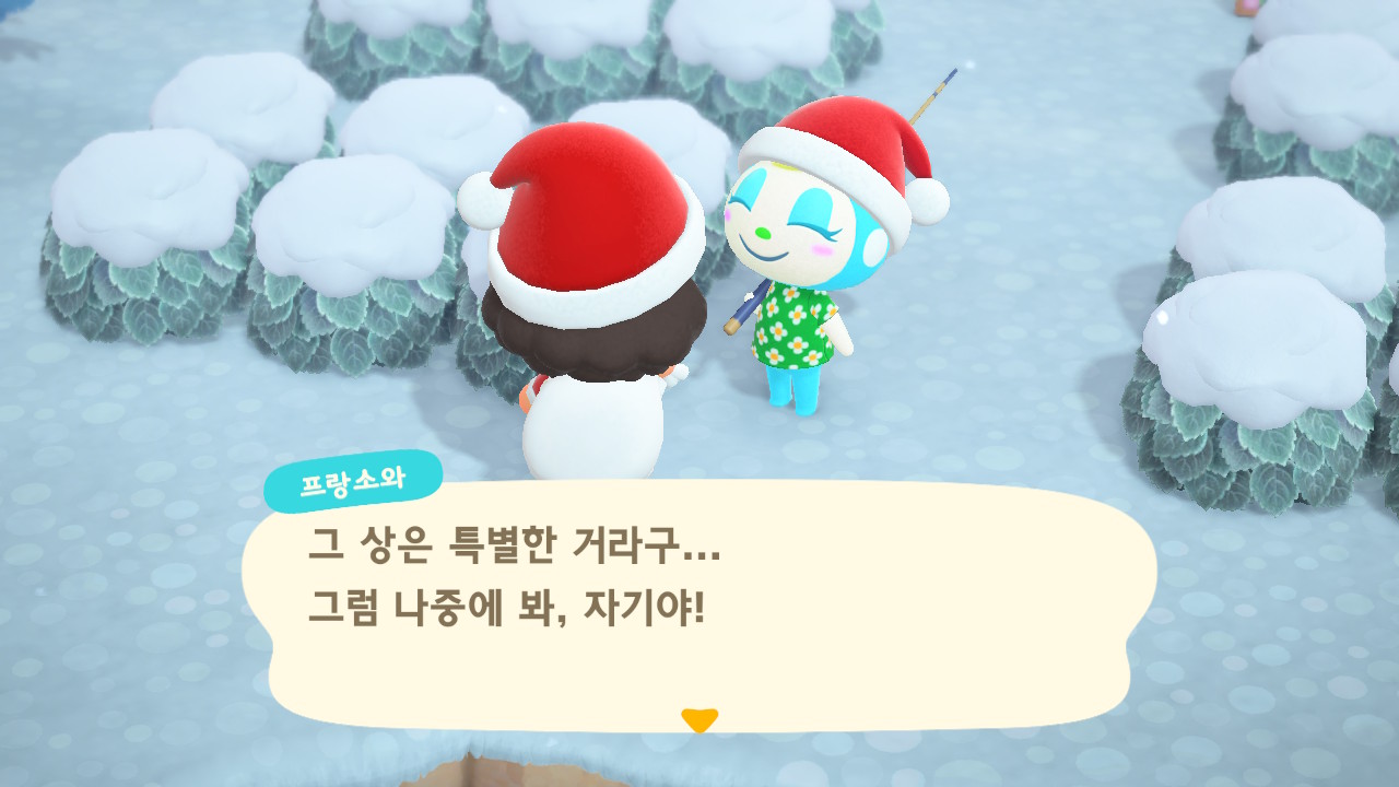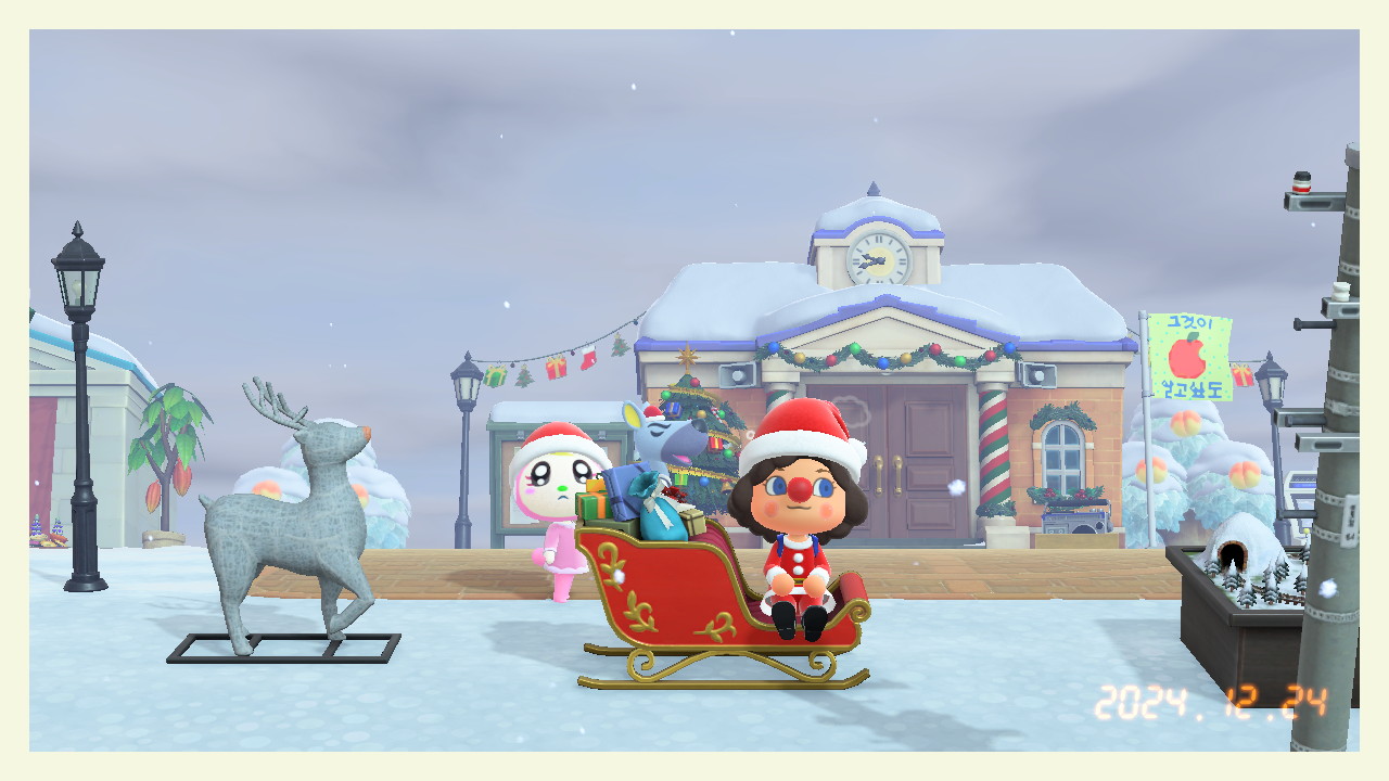 | 모동숲 182일: 크리스마스 당일 (생각보다 별거 없음ㅋㅋ), 죠니 방문 (0) | 2025.09.13 |