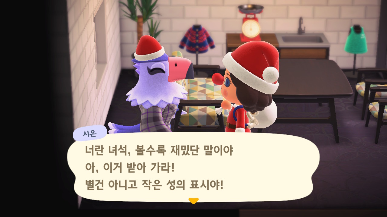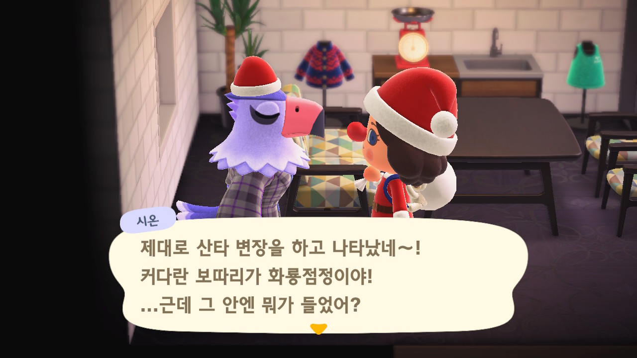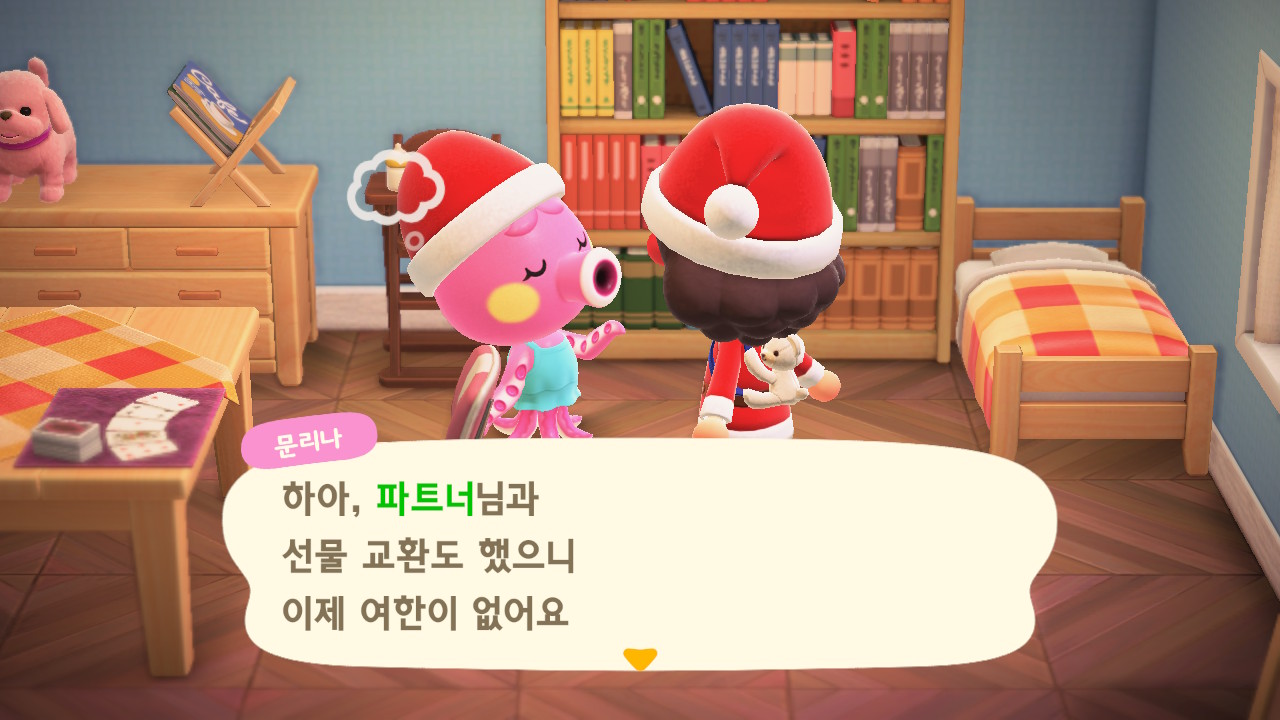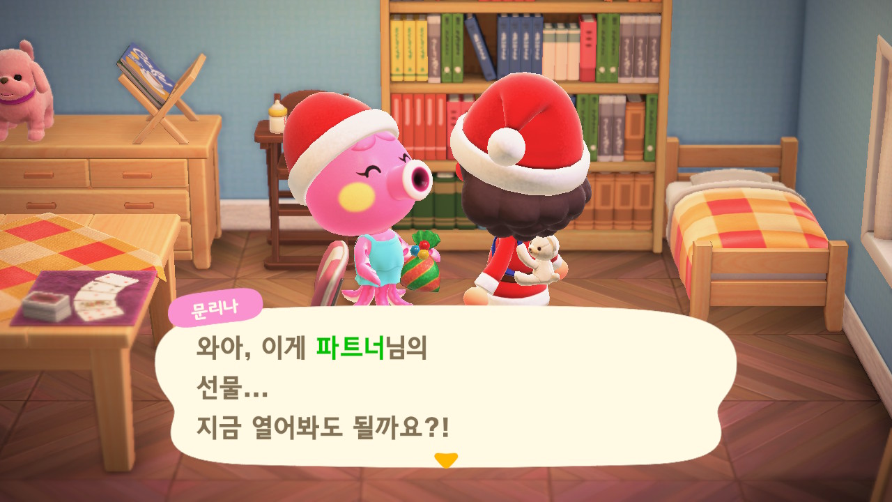 | 모동숲 182일: 크리스마스 당일 (생각보다 별거 없음ㅋㅋ), 죠니 방문 (0) | 2025.09.13 |